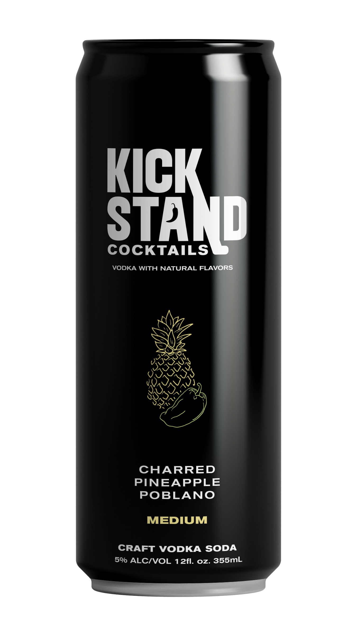 Kickstand Cocktails craft vodka sodas are made with premium vodka, real fruit juice and natural flavors with a touch of heat. The bold and refreshing cocktails contain: 110 calories, no added sugar, zero carbs and 5% ABV in four clean flavors: Smashed Raspberry Serrano, Roasted Jalapeño Cucumber, Charred Pineapple Poblano, and Torched Peach Chipotle. Available in 8-pack variety pack with two cans of each flavor.